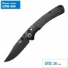 Рукоять изготовлена с использованием карбоновых накладок. Карбон это довольно дорогой, но невероятно прочный материал. Он очень легок и не боится влияния химических реагентов. Переплетения карбоновых нитей, вырисовывают уникальную текстуру, поэтому карбон прочно обосновался в сегменте аксессуарных и джентльменских ножей. Стоит отметить, что несмотря на то, что карбоновые нити почти не возможно порвать, этот материал плохо переносит удары, а так же прямое воздействие солнечных лучей.